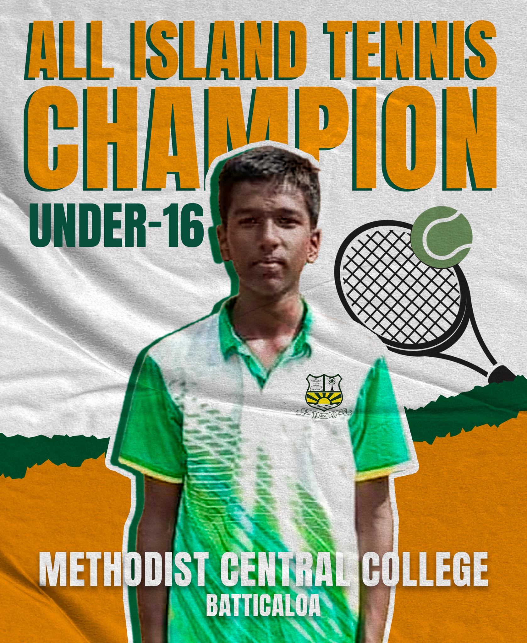 It is with great pride that Bt/Methodist Central College announces the success of Kokilathas Thanushgar, one of our own, who won the Under-16 individual category at the All Island Inter School Tennis Arjan Perera Tournament 2024, thereby taking home the title of "All Island Champion"!